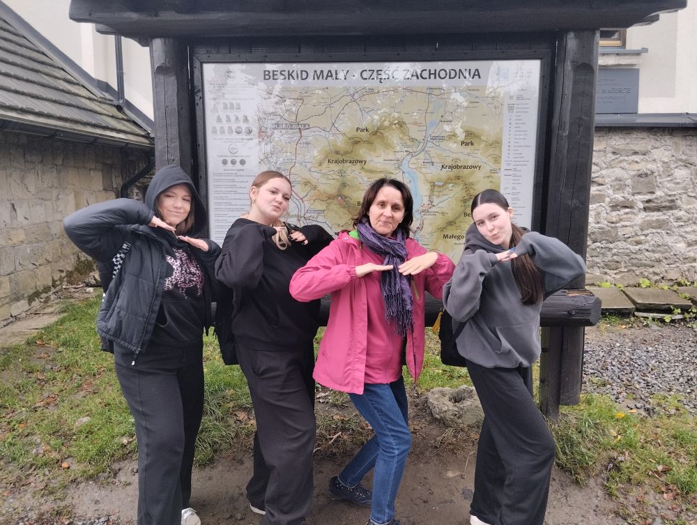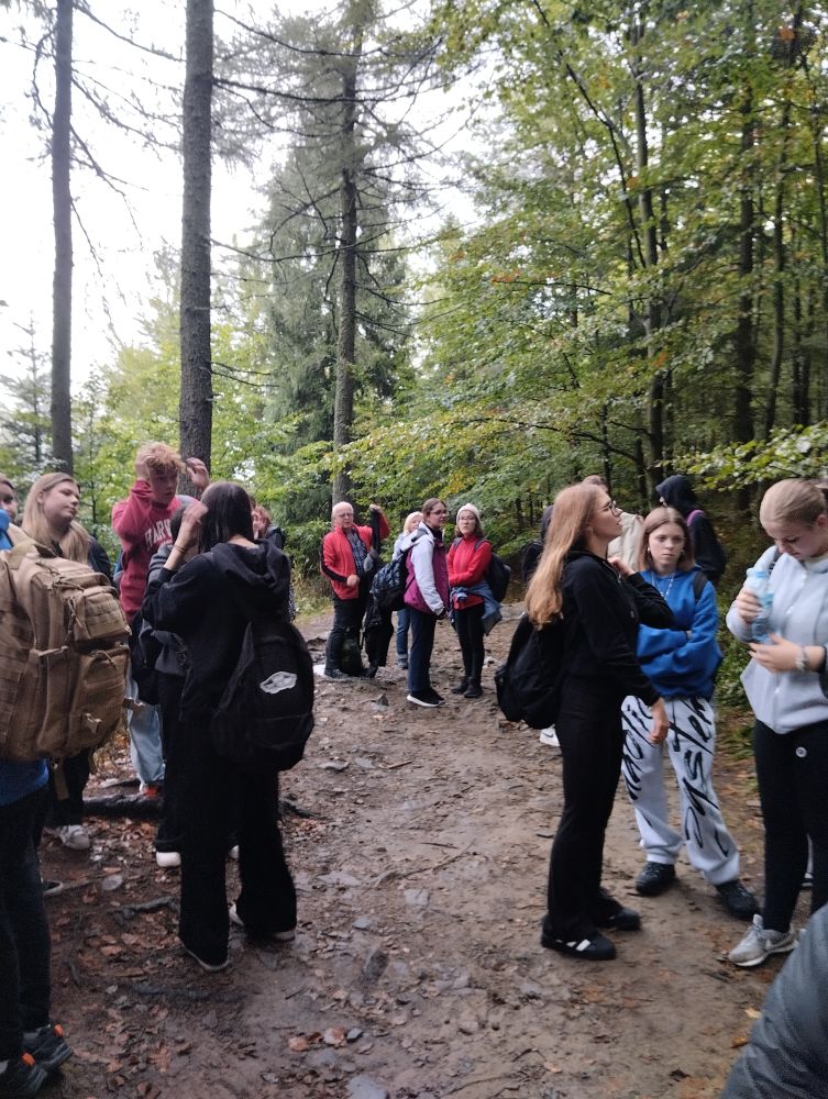 30 września uczniowie z klas technikum organizacji turystyki wraz z przewodnikiem beskidzkim wyruszyli na szlak prowadzący na Magurkę (909 m n.p.m.) w Beskidzie Małym. Pogoda sprzyjała wędrówce – niebo było lekko zachmurzone, a temperatura idealna do marszu. Szlak prowadził nas początkowo przez las, w którym unosił się zapach wilgotnej ściółki. Pierwsze kilometry były dość strome, ale rytmiczne podejście szybko pozwoliło wejść w górski nastrój. Dzięki wzajemnej motywacji i dobremu humorowi każdy krok przybliżał nas do celu. Po kilku godzinach wspólnej wędrówki dotarliśmy do schroniska na Magurce. Tam czekał na nas zasłużony odpoczynek – ciepła herbata, pieczone kiełbaski i czas na rozmowy. Była to świetna okazja do integracji – wspólne zdjęcia, praca z mapami oraz ciekawe opowieści z wycieczek pana przewodnika. Rajd na Magurkę okazał się nie tylko wspaniałą przygodą, ale również sposobem na zacieśnienie więzi. Już planujemy kolejne górskie wyprawy!