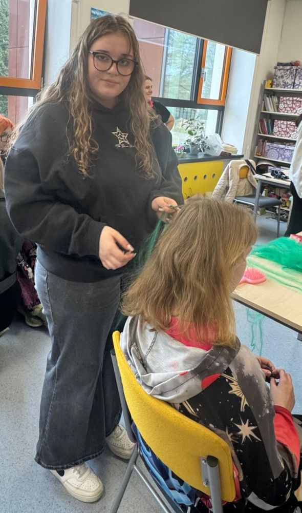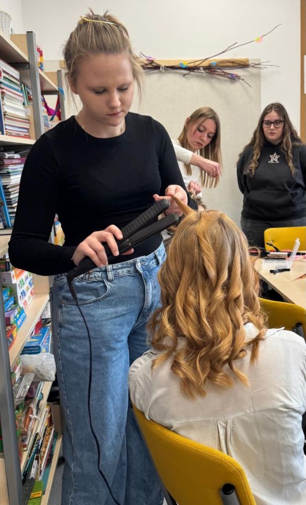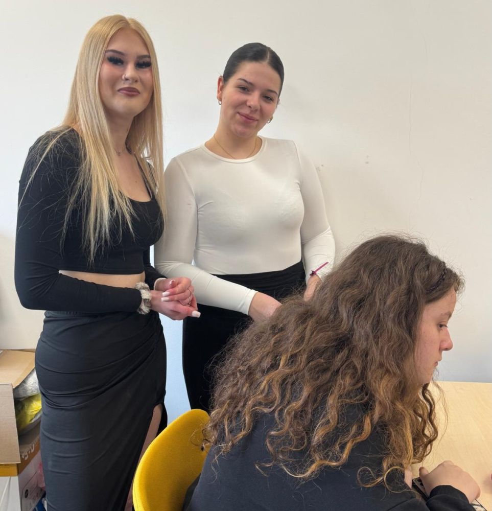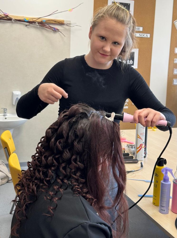Młodzi adepci fryzjerstwa, pełni energii i zapału, wykonywali różnorodne fryzury i stylizacje, dbając przede wszystkim o piękny wygląd, ale i dobre samopoczucie uczennic. Spotkanie przebiegało w bardzo miłej i radosnej atmosferze, której towarzyszyły uśmiechy i wiele wzajemnej sympatii.