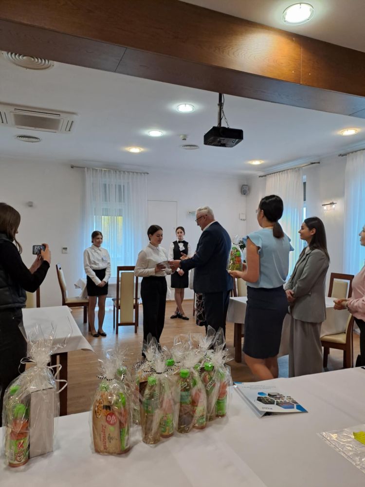Naszą szkołę reprezentowały uczennice z klasy 3 technikum hotelarskiego: Kinga Mazgaj i Amelia Górkiewicz. Do tegorocznej edycji konkursu przystąpili uczniowie z siedmiu szkół hotelarskich. Poziom był niezwykle wyrównany, a uczestnicy wykazali się ogromną wiedzą i zaangażowaniem. Zadaniami reprezentantów szkół były: prezentacja i odpowiedź na pytania w języku angielskim na temat walorów turystycznych swojego regionu, pisemny test składający się z 20 pytań, obsługa gościa w restauracji hotelowej, obsługa gościa na recepcji i umiejętność poradzenia sobie w sytuacjach stresowych oraz wypełnienie wybranej dokumentacji z zakresu kwalifikacji.