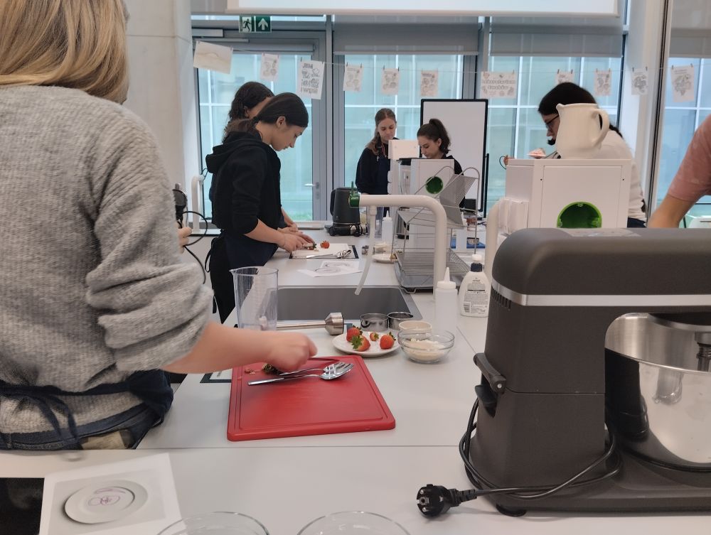 Nie zabrakło również elementu artystycznego – uczestnicy mieli możliwość aranżacji wypieków do zdjęć, ucząc się, jak prezentować jedzenie w sposób apetyczny i estetyczny. To była doskonała okazja, by połączyć kreatywność z nauką i praktycznymi umiejętnościami.